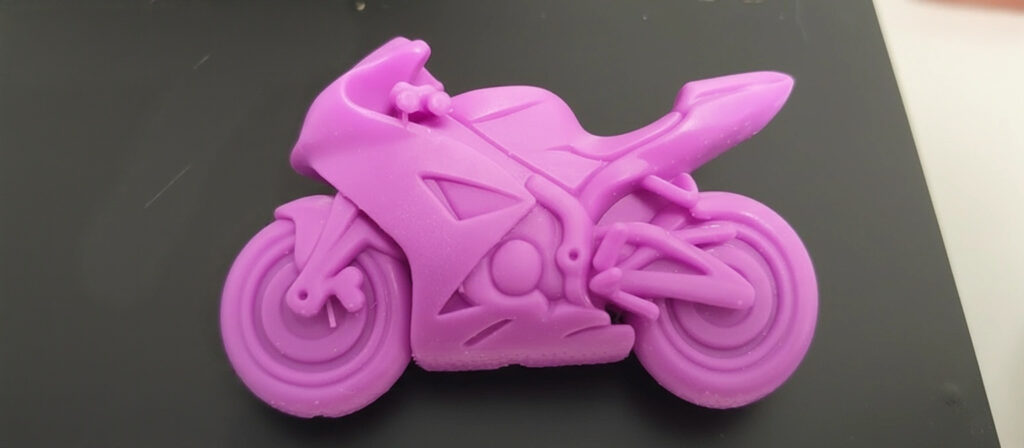 Motorcycle presentation model. Designed with AI, printed with custom color resin.